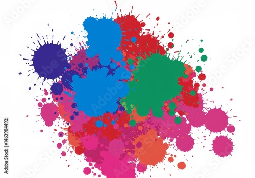 Multicolor Paint Splashes on White Backdrop in Abstract Design