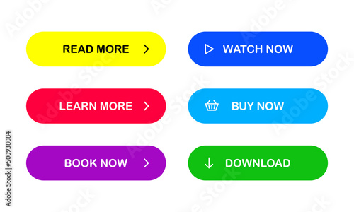 Multicolored buttons for your web site. Read more. Learn more. Book now. Watch now. Buy now. Download. EPS 10