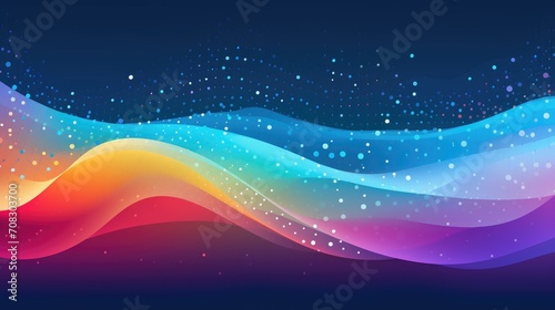 Multicolored colorful abstract wave with dots on a dark blue background. Generative ai