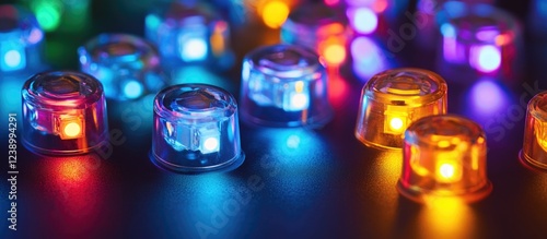 Multicolored decorative LED lights glowing against a dark background withCopy Space for text placement