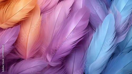 Multicolored feathers as a background. Texture. Close-up.