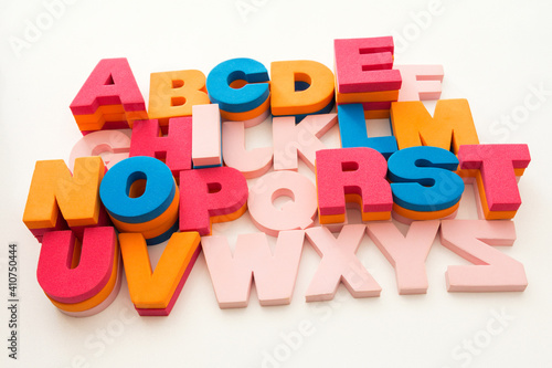Multicolored letters alphabet on white background