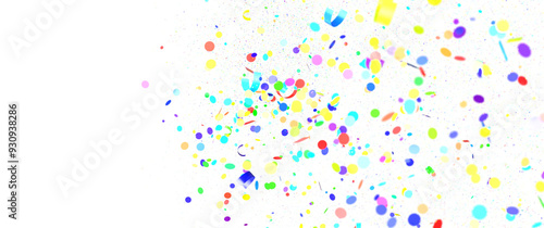 Multicolored paper confetti on transparent background. Realistic confetti flying. Colorful scattered items to holiday decorations.