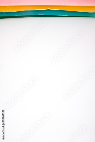 multicolored photography backdrops in a photo studio on the white wall background, free space