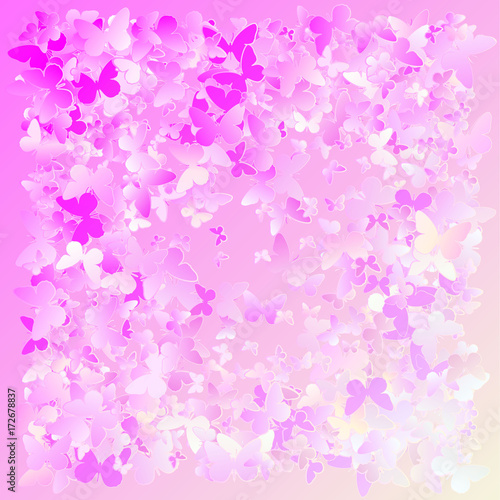 Multicolored pink, purple flying butterflies on a white background. Isolated object. Vector butterflies background design. Colorfull EPS 10 concept. Holiday, children's backdrop