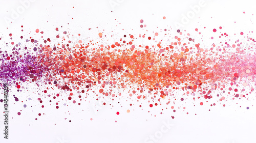 Multicolored powder explosion forming dynamic granules on a white backdrop