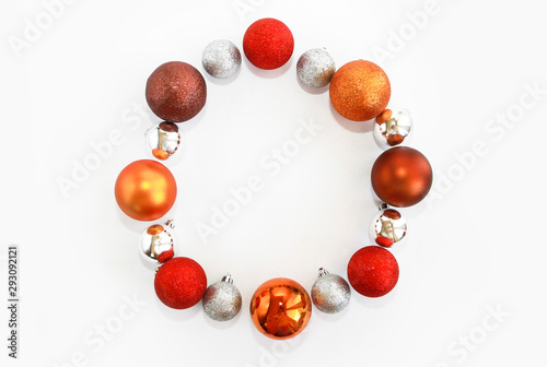 multi-colored shiny toys balls and cones on the Christmas tree for the New Year holiday