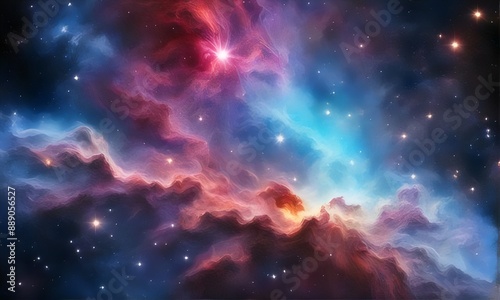 Multicolored space cloud nebula. Nighttime starry sky