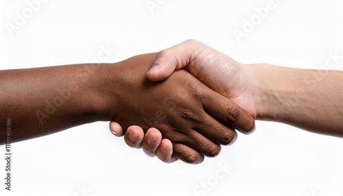 Multicultural diversity joining of hands, handshake, togetherness, community photo with diverse skin colors on isolated white background
