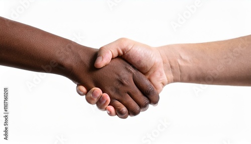 Multicultural diversity joining of hands, handshake, togetherness, community photo with diverse skin colors on isolated white background