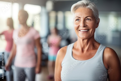 Multicultural group of middle aged people working out in fitness studio representing variety of cultures