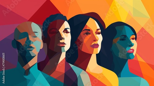Multicultural people in minimalist avant-garde style, standing together for ethnic equality concept
