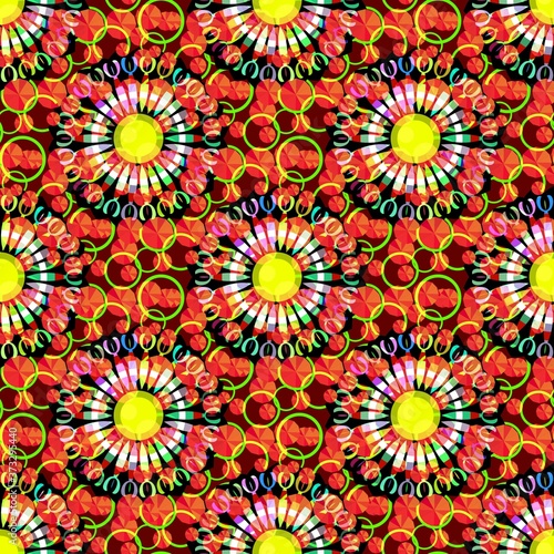 multi-layer seamless abstract pattern. bright mottled circles on a red background.