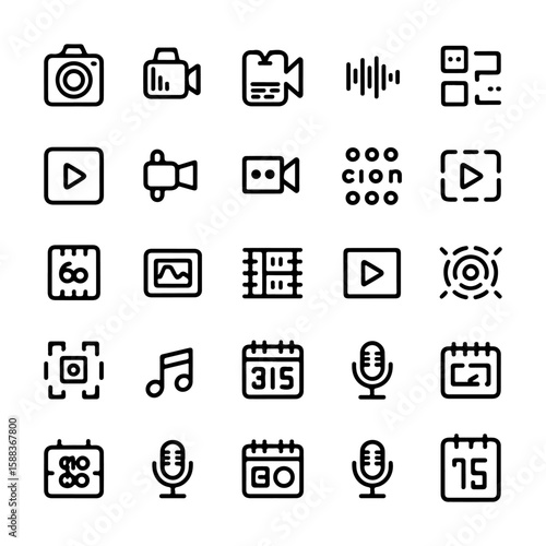 Multimedia and Content Creation Tools A Vector Icon Set for Digital Media Design and Creative Projects with a Cat Illustration