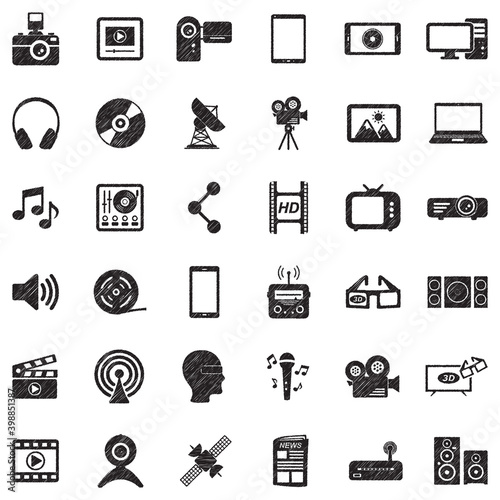 Multimedia Icons. Black Scribble Design. Vector Illustration.
