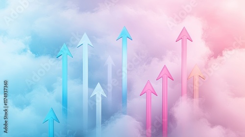 Multiple arrows of different heights and colors rising upwards, representing growth, achievement, and the pursuit of goals and aspirations.