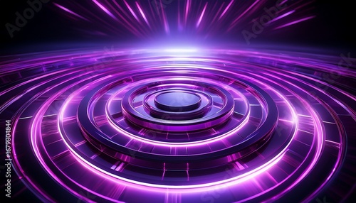 multiple concentric rings radiating purple light pulses on a sleek dark surface with subtle reflections