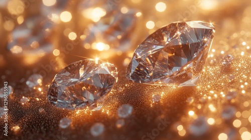 Multiple diamonds scattered across a clear, shiny, glitter background.