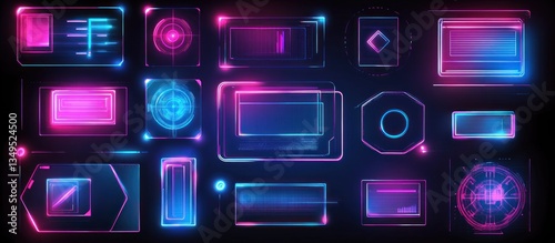 Multiple Neon Futuristic UI Elements Set Against a Dark Backdrop