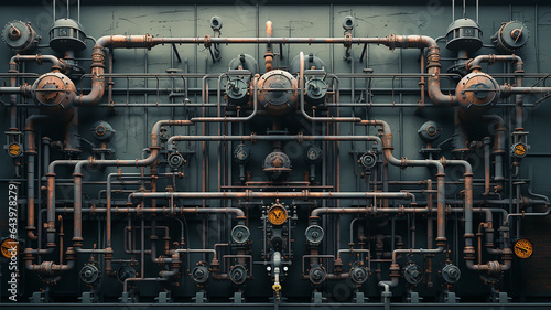 multiple pipes in production, a pipeline in a factory in an industrial room