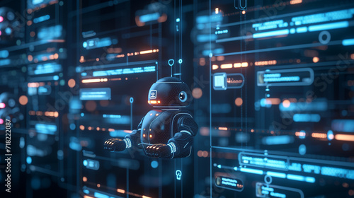Multiple screens displaying various chat bot conversations, chat bot concept, dynamic and dramatic compositions, with copy space