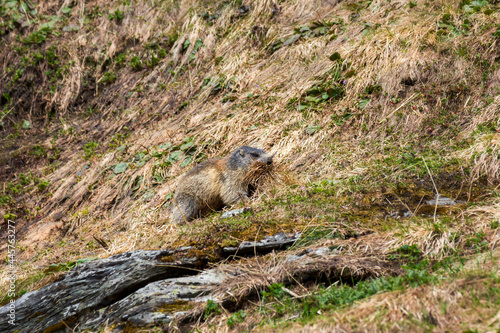 Murmeltier auf einer Wiese im Großglockner Nationalpark, Kals Österreich