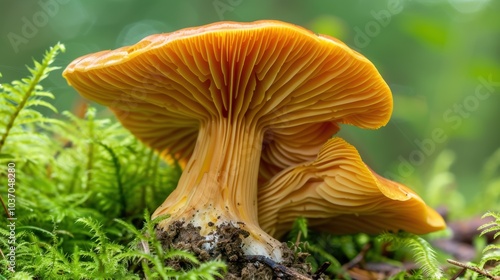 Mushroom depicted on a plain background, beautiful fungi macro. Background peaceful, mushroom vivid.
