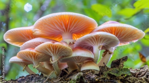 Mushroom depicted on a plain background, beautiful fungi macro. Background peaceful, mushroom vivid.