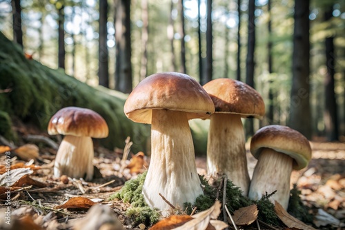 mushroom place. a family of fungi grown on moss. mushrooms in the forest. large view