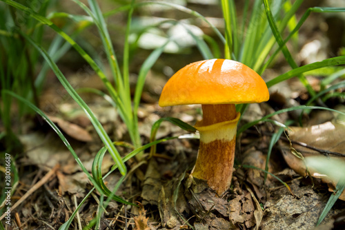 Mushroom Suillus grevillei (Greville's bolete or larch bolete) in the forest