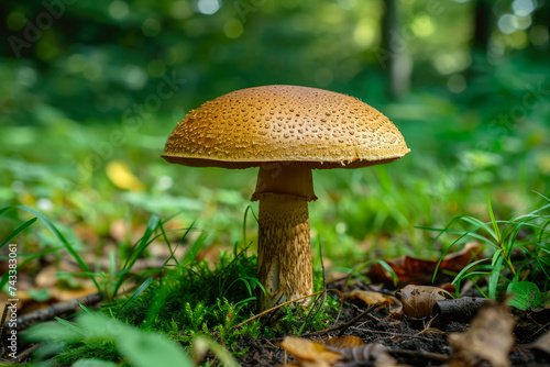 mushroom with a brown color and a cap shape and a protein overlay on the stem