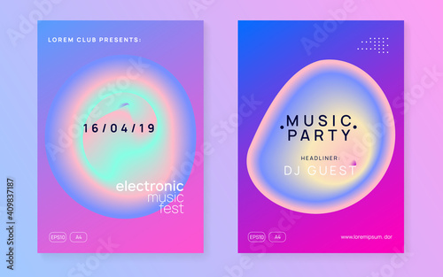 Music poster set. Electronic sound. Night dance lifestyle holiday. Dynamic electro club presentation template. Fluid holographic gradient shape and line. Summer fest flyer and music poster.
