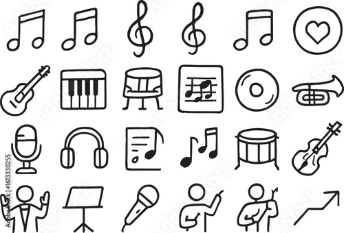 Musical instruments and symbols collection notes treble clef