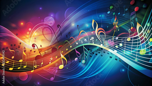 music-inspired background with dynamic notes and colorful patterns, ideal for concert posters, album covers, or digital content about music