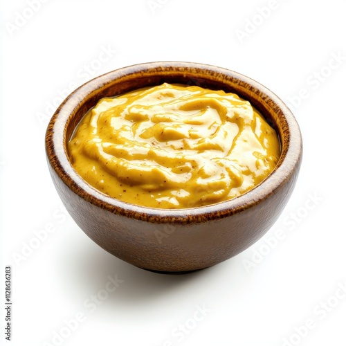 Mustard dip in a bowl isolated on white background
