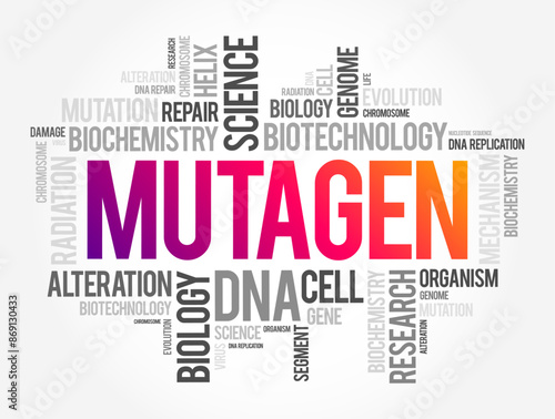 Mutagen - anything that causes a mutation (a change in the DNA of a cell), word cloud concept background