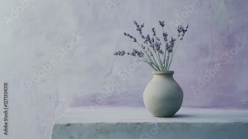 Muted lavender painted wall background with subtle imperfections, creating a soft and relaxing ambiance.