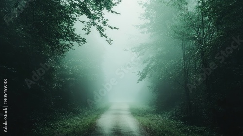Mysterious Foggy Forest Path: A Serene and Enigmatic Journey