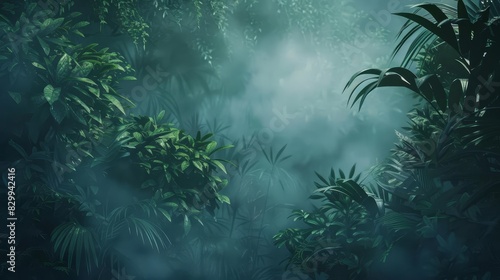 mysterious foggy jungle with dense foliage and ethereal atmosphere digital illustration