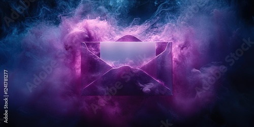 Mysterious glowing envelope emerges from colorful smoke in a dark atmosphere