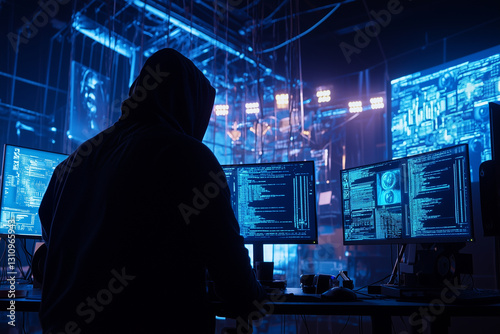 Mysterious Hacker in Dimly Lit Room