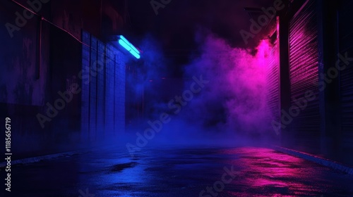 Mysterious neon alleyway scene at night urban landscape atmospheric photography dreamlike environment