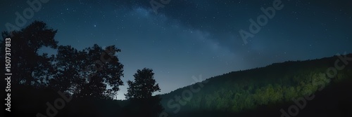 Mysterious Night Nature Scene with Moonlight, Mist, Stars, Forest Atmosphere, Cinematic Mood, Realistic Landscape Art