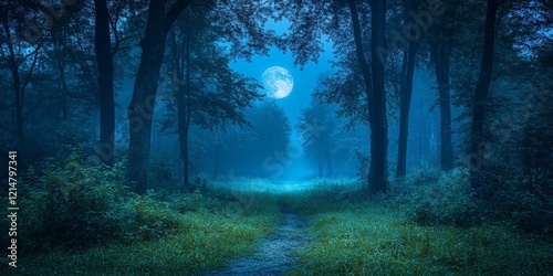 Mysterious Pathway Through a Forest at Night