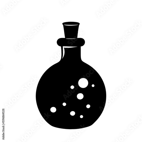 Mysterious Potion: A minimalist depiction of a potion bottle, exuding an aura of mystery and alchemy, ready to be a catalyst of transformation or spellcasting