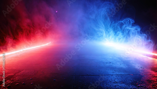 Mysterious scene of red and blue smoke glowing in the dark atmosphere on a textured surface.