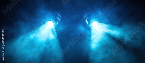 Mysterious spotlight illumination with ethereal fog dancing in a calming aquamarine atmosphere