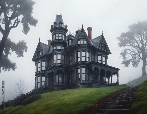 Mysterious Victorian Mansion in Fog
