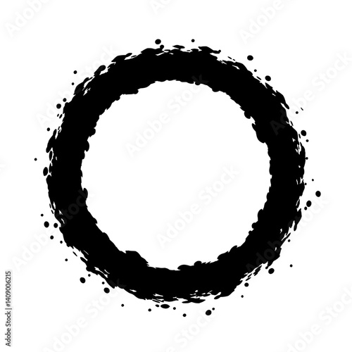 Mystical Circle: An abstract, high-contrast illustration captures a perfect circle painted in a bold black ink, the edges of the circle soft, textured.
