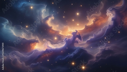 Mystical Cosmic Nebula - Glowing Interstellar Clouds in Deep Space
